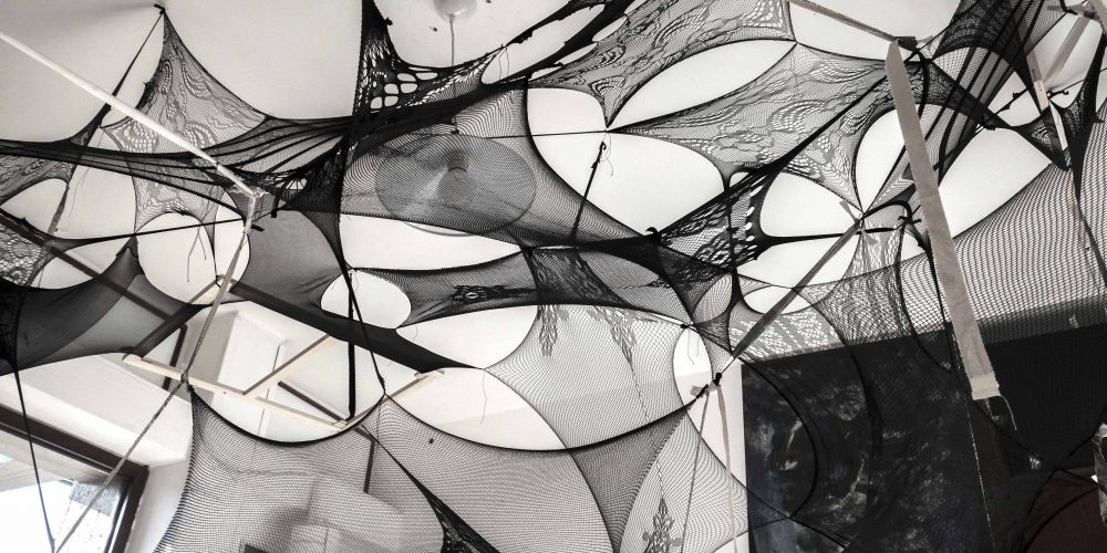 In this project we are using fishnet-stockings to reference bodies, creating a visual metaphor that explores the way in which psychological spaces are built and collapse in feedback loops between bodies and environment. It presents hidden and distant parts to which we want to return. It is a physical manifestation of an often quiet and invisible psychological experience.